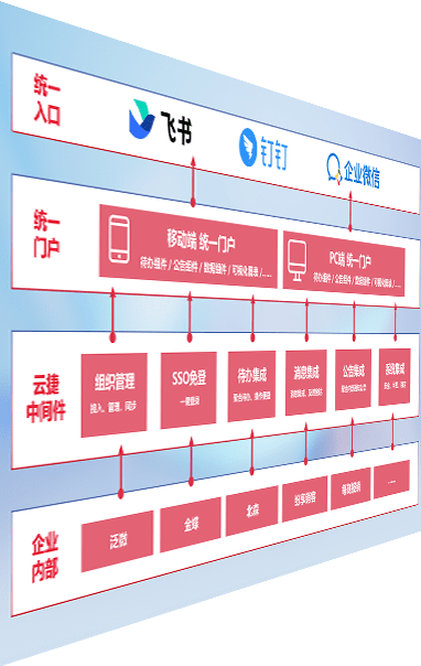 对协作平台提供支持服务,,支持企业应用与协作平台对接,,包含组织同步、、、消息集成、、待办集成等。。。支持目前主流的协作平台:钉钉、、、、企微和飞书。。。